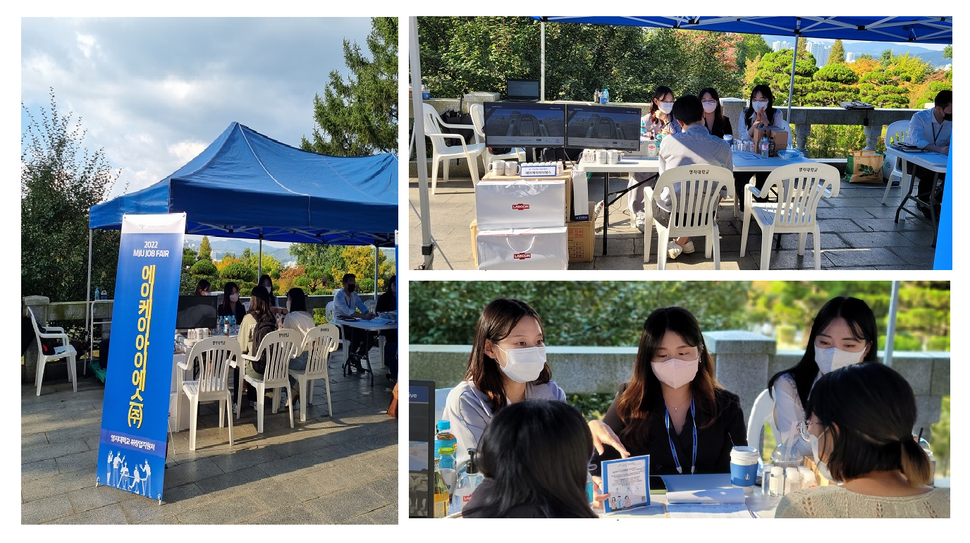 AK아이에스가 지난 10월 5일 명지대학교에서 열린 2022 취업박람회에 참가해 명지대학교 총학생회와 함께 청년들의 안정적인 사회