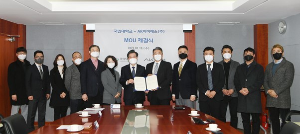 AK아이에스가 2022년 1월 19일 국민대학교와 국민대학교 교내 본부관에서 산학협력 및 인력교류 확대를 위한 업무협약을 체결하였습니다.