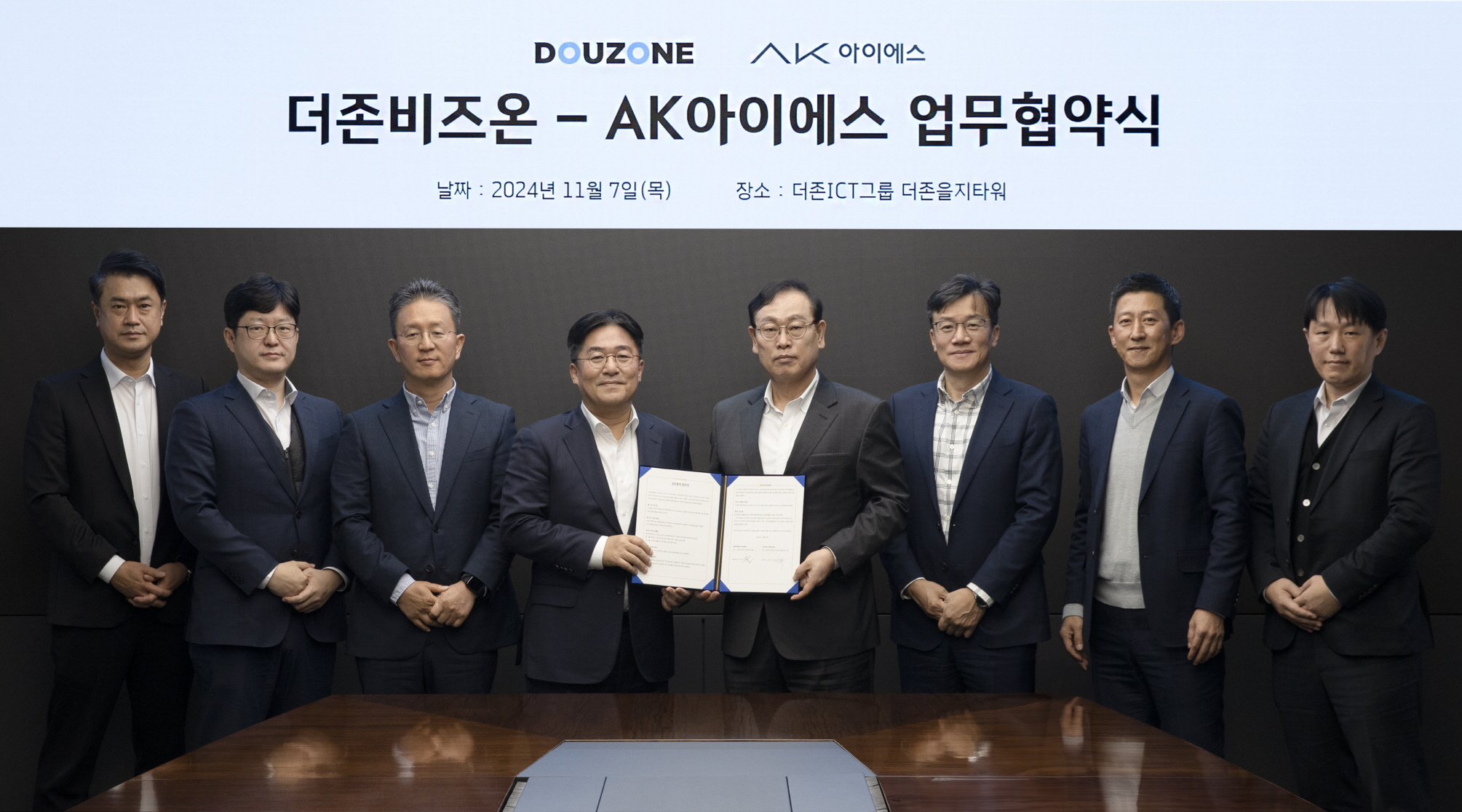 AK아이에스㈜(대표 이찬성)은 7일 서울 중구 더존을지타워에서 ㈜더존비즈온(대표 김용우)와 기업용 솔루션의 완성, ‘OmniEsol’ 대외 사업 확대를 위한 비즈니스 파트너 업무협약(MOU)을 체결했다고 밝혔다.